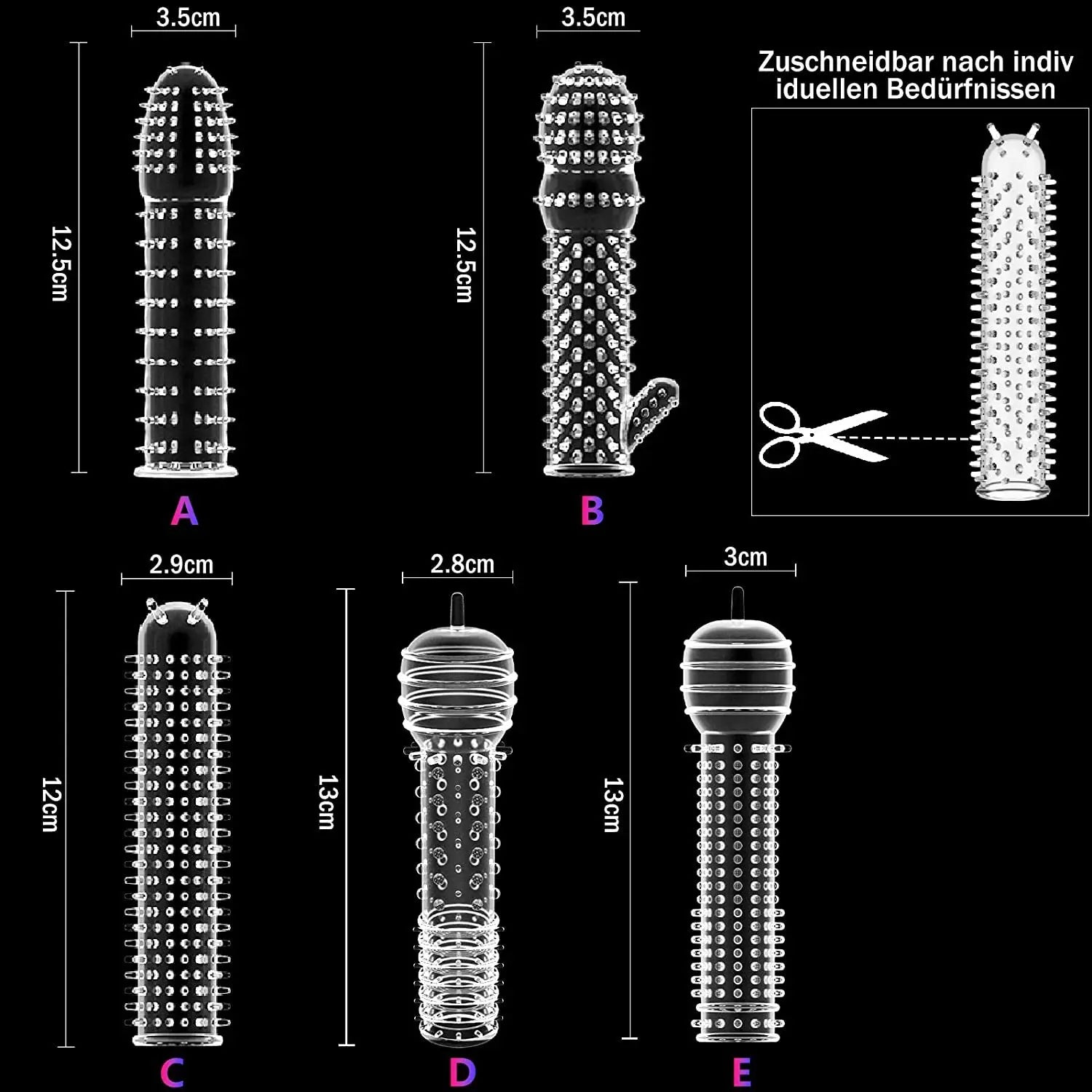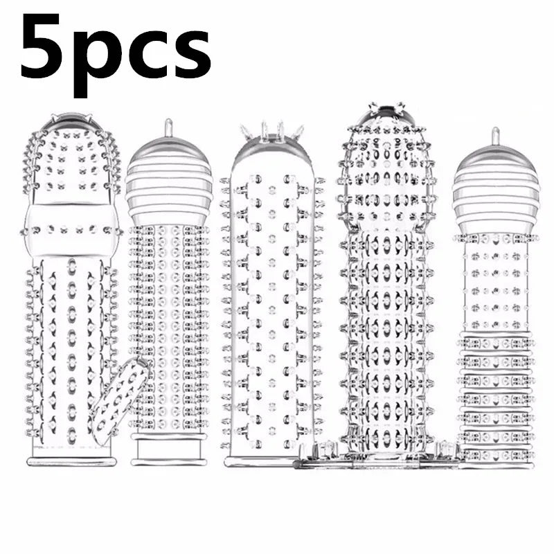 5Pcs Reusable Condoms Male Penis Extension Sleeves Sperm Lock Cock Ring Dildo Cover Adult Sex Toys For Men Delay Ejaculation 18+