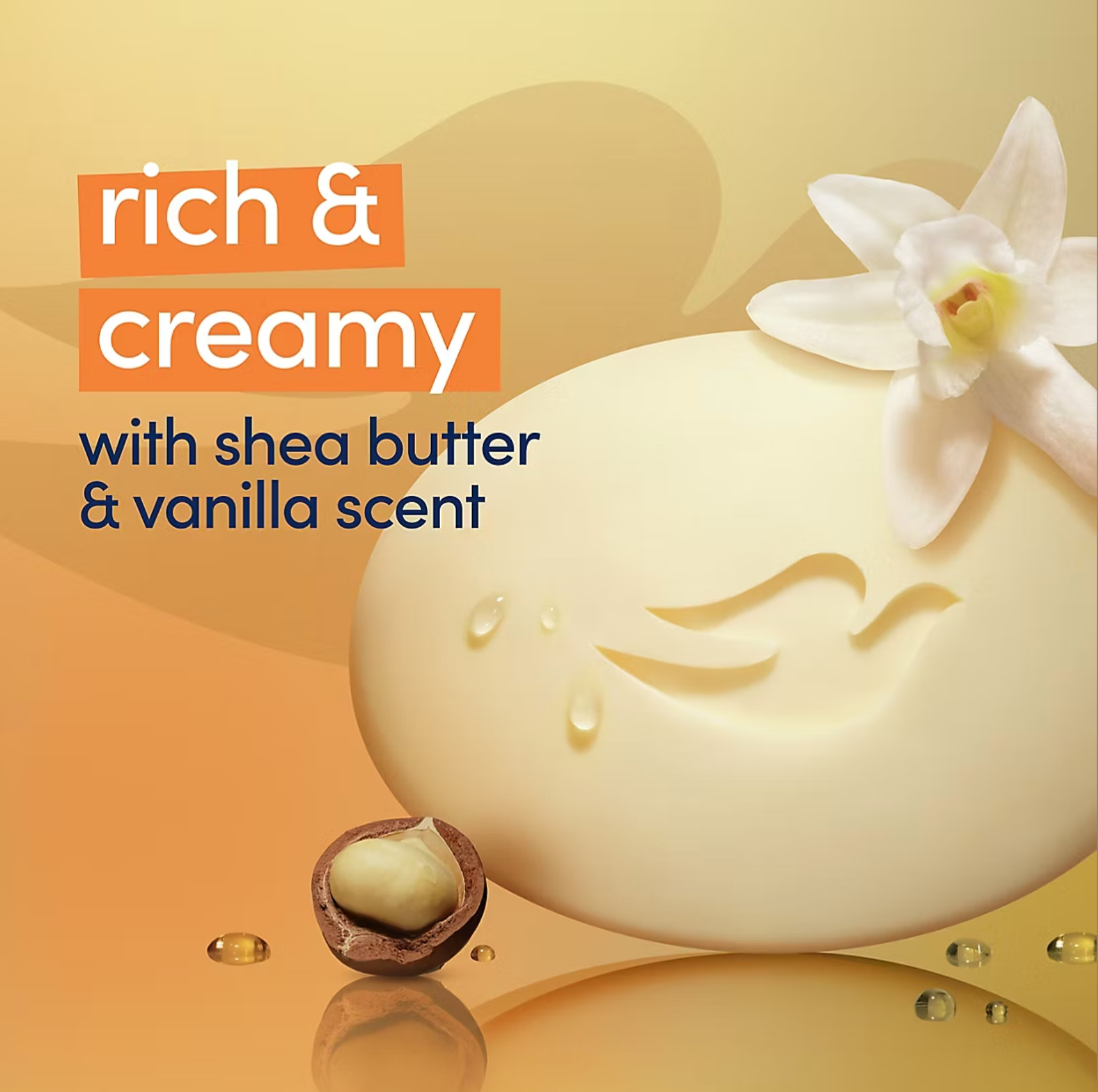 We believe that cleansing should be an opportunity for you to take a few moments for yourself. That’s why we’ve created Dove Shea Butter Beauty Bar Soap, an indulgent beauty bar more gentle than a bar soap to moisturize and nourish skin. Made with mild cleansers and 1/4 moisturizing cream, this plant-based cleanser leaves your skin lightly scented with the warm and relaxing fragrance of shea butter and vanilla. The benefits of shea butter for skin have been well known for many years: its high concentration of vitamins and fatty acids means that it’s prized for its moisturizing properties. Our Shea Butter Beauty Bar is infused with a blend of shea butter and warm vanilla. The pH-balanced formula works to nourish skin and moisturize as you cleanse, leaving it feeling silky smooth and softened. As this beauty bar creates a rich, creamy lather, enjoy the rich, warm scent to feel soothed and pampered. As the #1 dermatologist-recommended bar brand, Dove Shea Butter Beauty Bar Soap contains no parabens, phthalates, or sulfate cleansers. Dove believes real beauty is cruelty-free. Globally, Dove does not test on animals and is PETA Approved. Each Beauty Bar carries the PETA cruelty-free logo for added peace of mind. Through the Dove Self-Esteem Project, the brand supports parents, mentors, teachers, and youth leaders in delivering self-esteem education - reaching over 60 million young people so far. By 2030, Dove aims to help 1/4 billion people build positive body confidence.