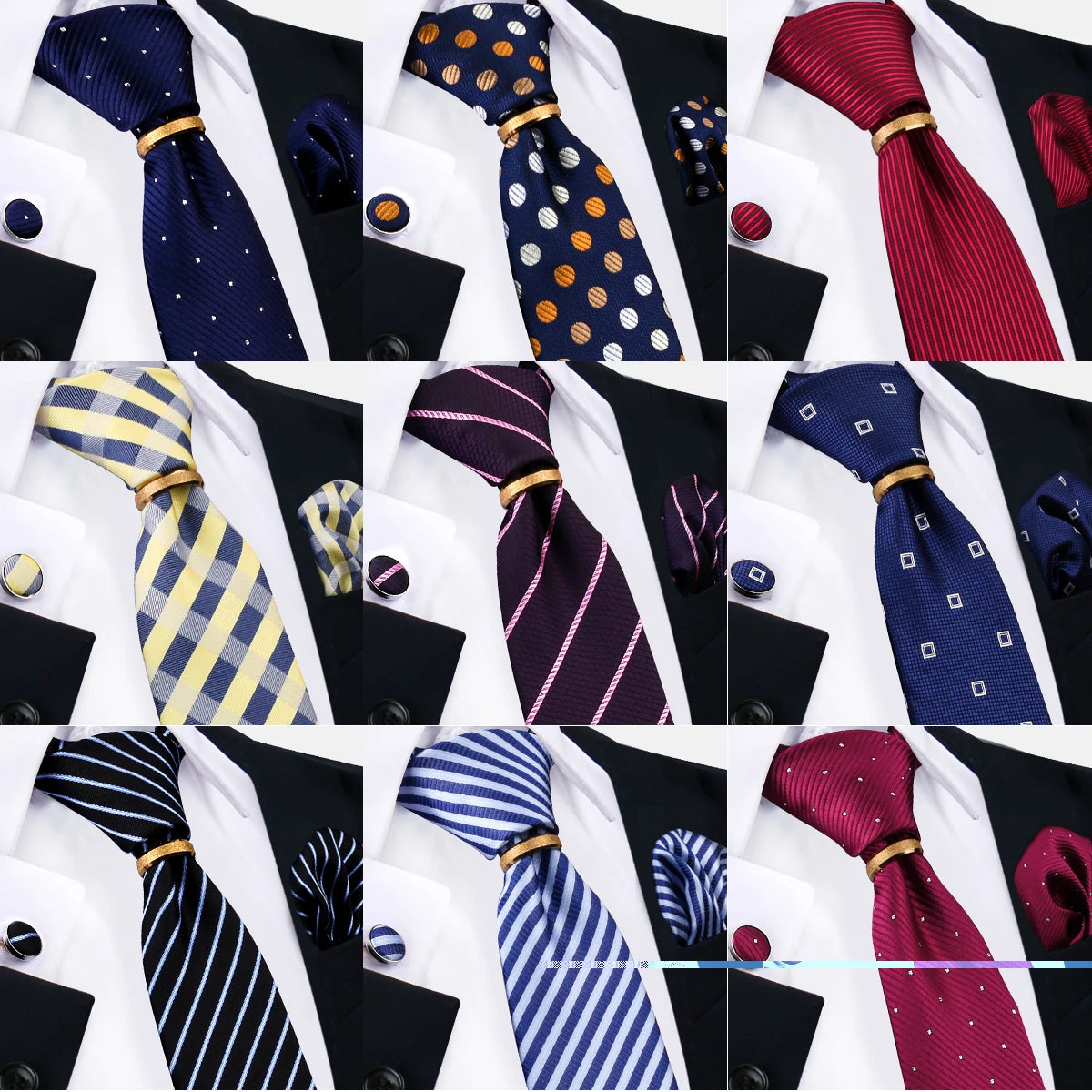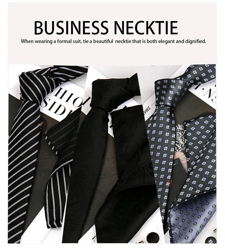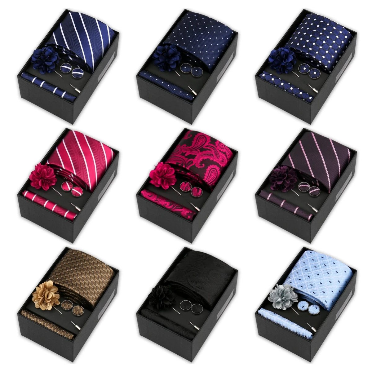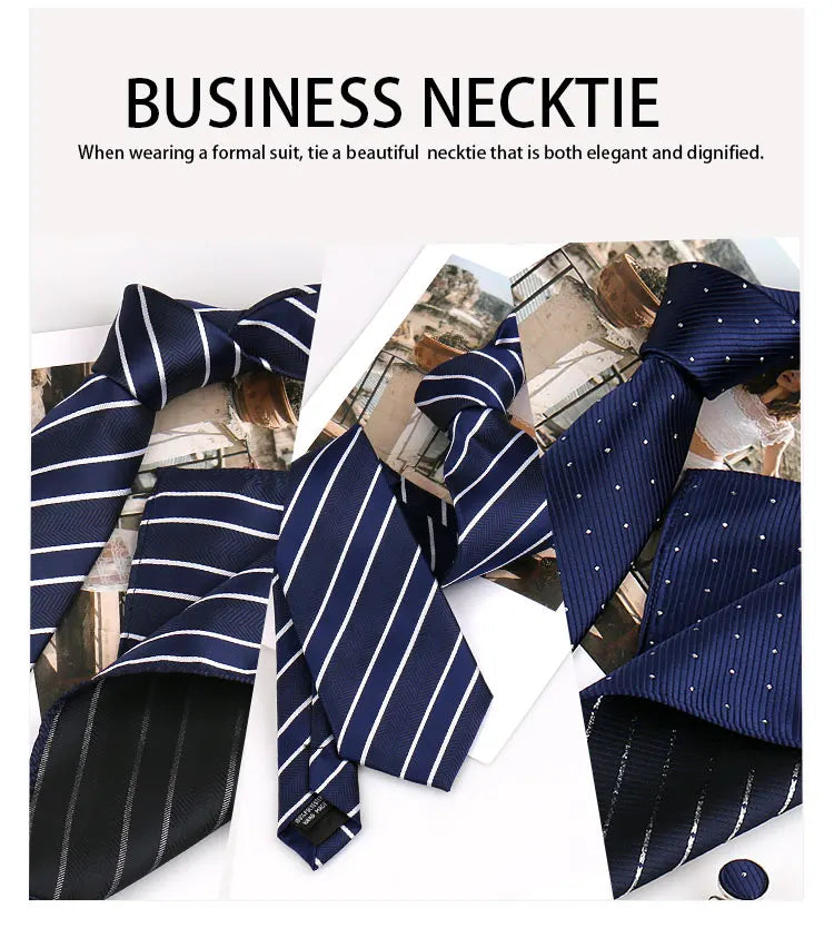 Elegant Ties For Men Gift Fashion Men Tie Set Striped Luxury Necktie Handchief Cufflinks 3 Pcs Business Wedding Suit Accessories