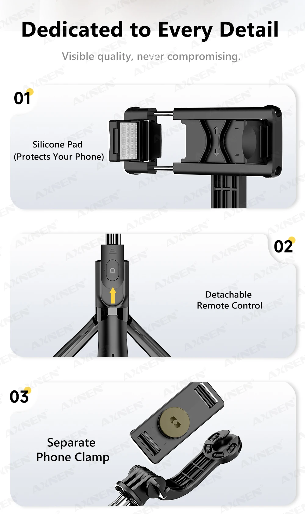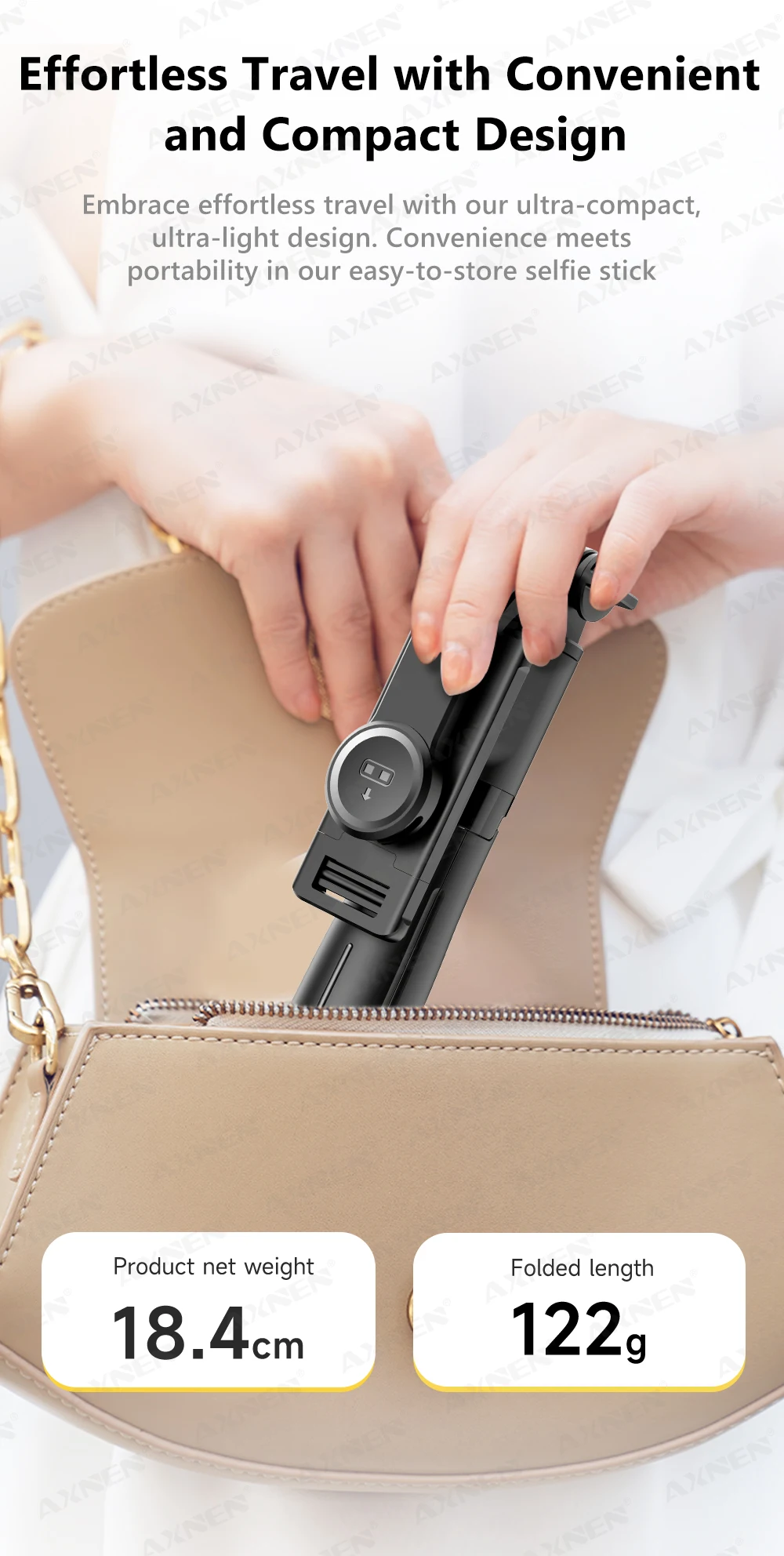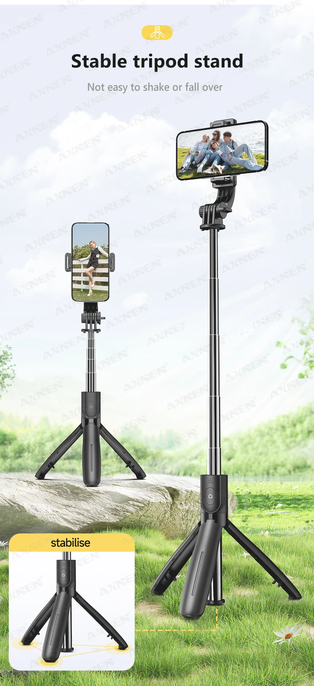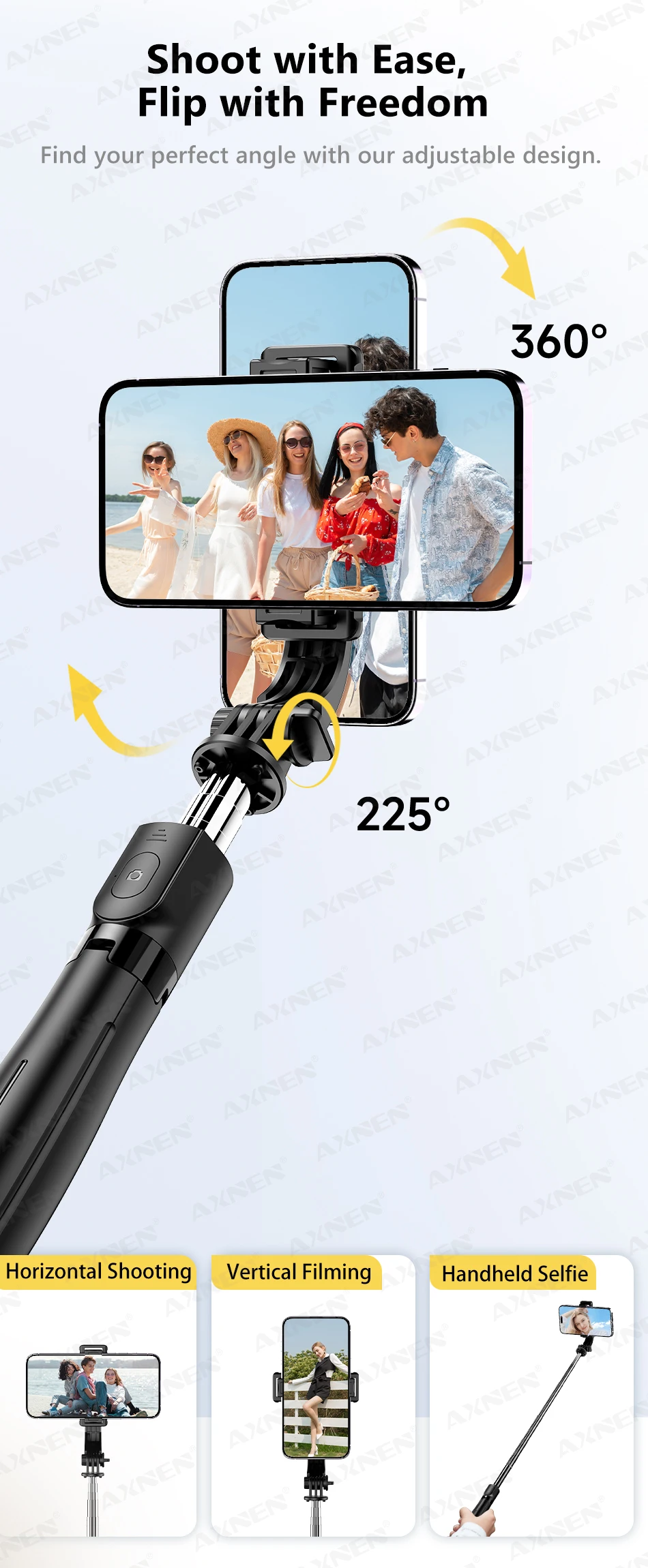The L21 selfie stick features a 360° rotatable holder (fits devices up to 3.7" wide), ideal for capturing wide-angle shots at events, travels, and weddings.
